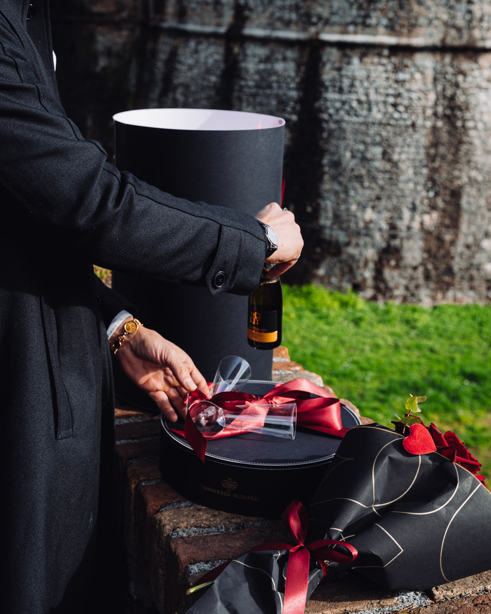 Completano l’esperienza due flute, per brindare subito e condividere un’emozione unica.