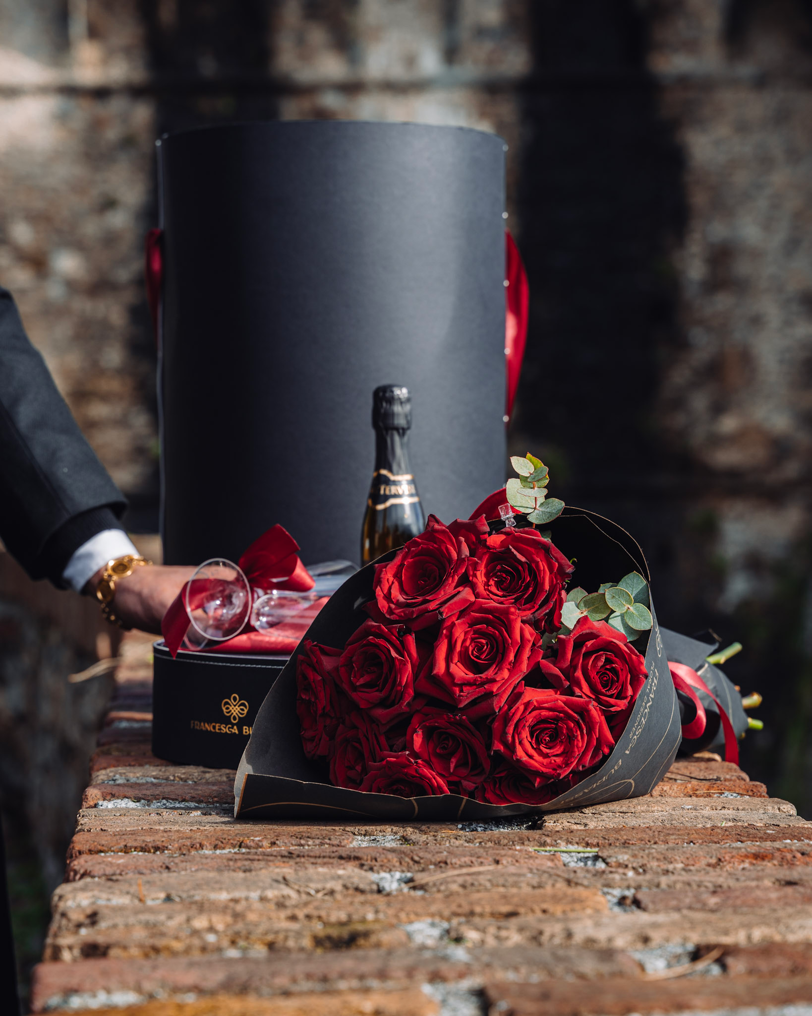 CHEERS TO ETERNITY è Una box grande ed elegante che si chiude, pensata per stupire al primo sguardo. All’interno custodisce un raffinato mazzo di 11 rose rosse fresche, simbolo intramontabile di amore e passione, accompagnato da una bottiglia da 375 ml di bollicine, ideale per celebrare i momenti davvero speciali.